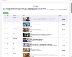 Bấm vào số Video ID, bạn sẽ thấy giao diện tải video, bạn tick chọn video và bấm vào “Bắt đầu tải”